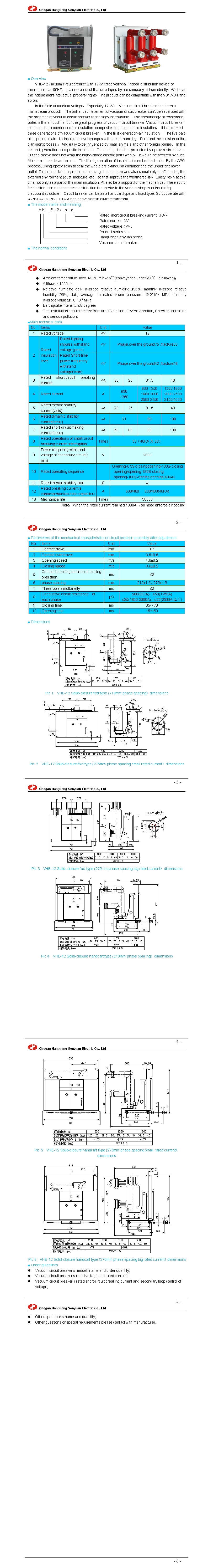 VHE-12 indoor high voltage vacuum circuit breaker (Solid-closure structure)