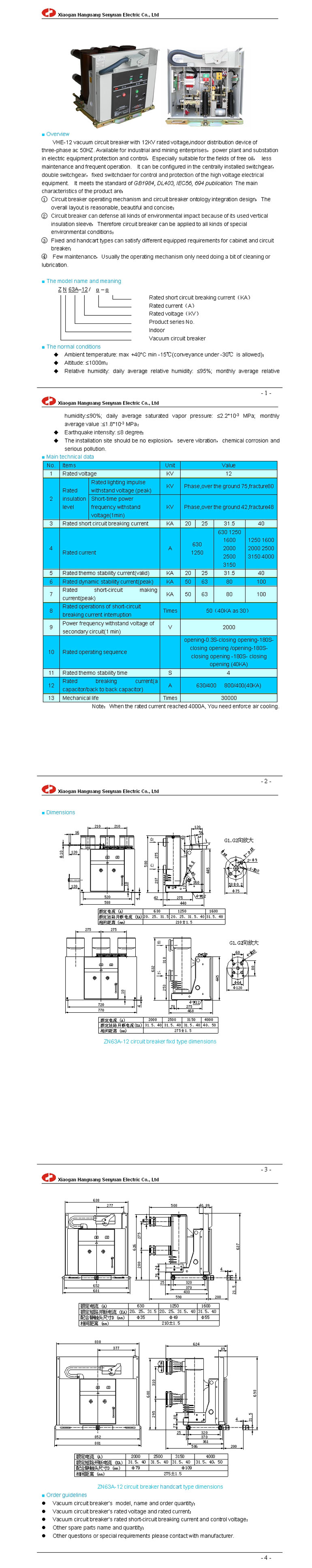 ZN63A(VS1)-12 indoor high voltage vacuum circuit breaker