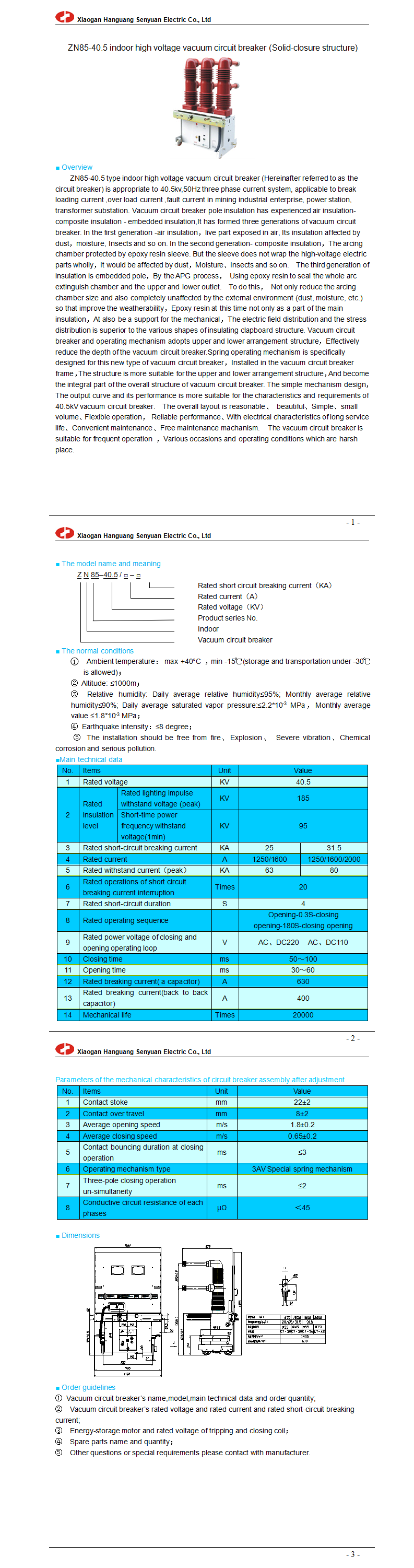 ZN85-40.5 indoor high voltage vacuum circuit breaker (Solid-closure structure)