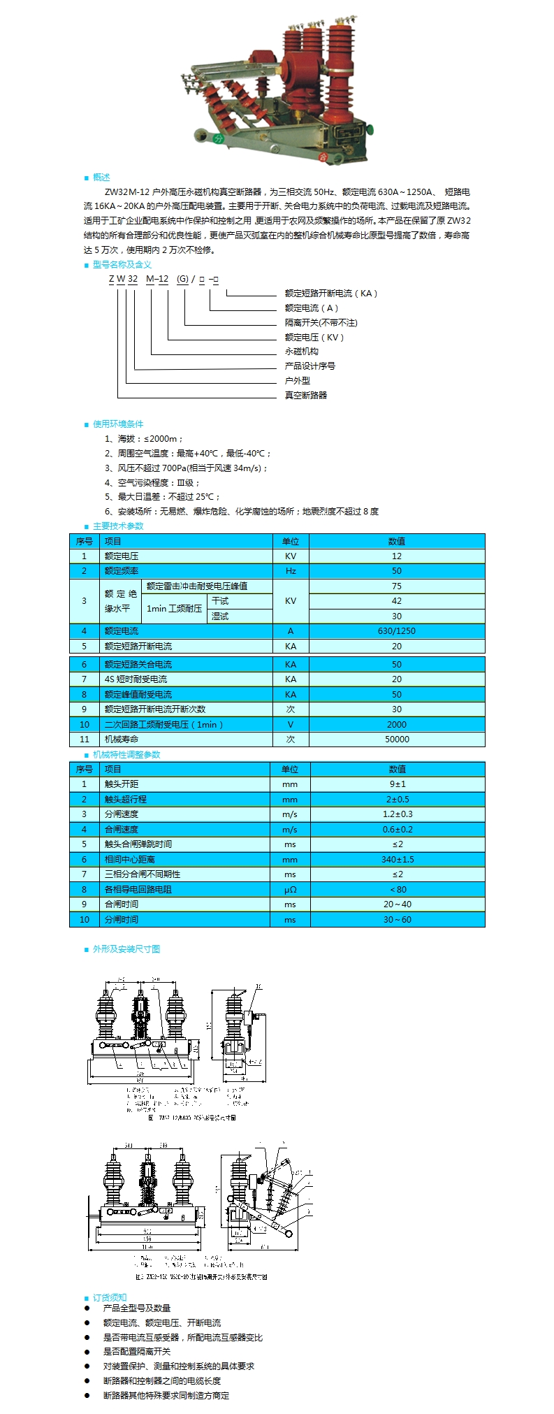 | ZW32M-12型永磁機(jī)構(gòu)戶外高壓真空斷路器 | |